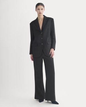 This modern blazer features a lapel and notch collar. in a single-breasted silhouette. with front darts and side panels to give it an effortless. updated shape. Made with RWS-certified wool with a touch of stretch for comfort. it adds instant polish to any look. Style it with matching pants or mini skirt for a fresh approach to suiting or go lower-key with denim or wide-leg pants.