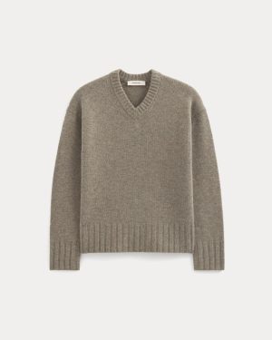 Cashmere Slim Crew Sweater | Heather Light Camel