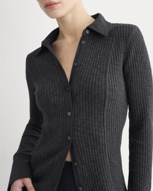 This button-up—made from a blend of organic cotton and responsibly-sourced viscose—is anything but stuffy. It’s soft jersey made dressy. combining a slubby. textured rib with intentional stitched seams to create waist-shaping.