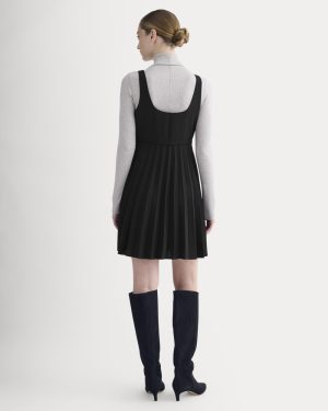Ready to take you from day to night—and back again. this pleated mini dress has an elegant empire waist with neat piping detail. An invisible zipper at the side seam and hook and eye closure keeps things fitted and comfy. Made with our GRS-certified recycled polyester drapey. satin-back crepe fabric. Style with chunky heel ankle boots and top with a blazer.