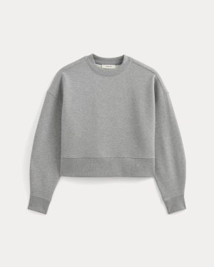 We upped the cozy factor on our best-selling crew with an added layer of snuggly soft fleece. This sweatshirt features an oversized. cropped fit and a dropped shoulder. on-seam stitched detailing. and darted sleeves. Made from premium cotton. think a softer. thicker. warmer material. with a relaxed fit—perfect for lounging around or running errands on cooler days.