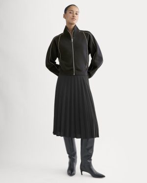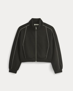 Made from soft. brushed-black fleece. this heavyweight track jacket isn’t light on the details. Cropped. loose relaxed fit. Contrast piping along the seams. Mockneck style with elastic hem and sleeves. Complete the look in the Luxe Fleece Track Pant.