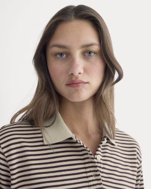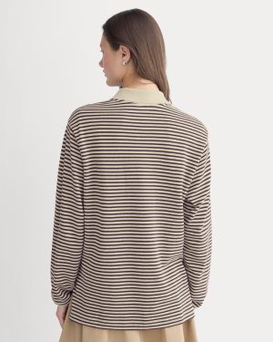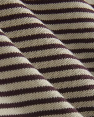 Oversized Pique Polo | Dusty Beige/Deep Plum Stripe