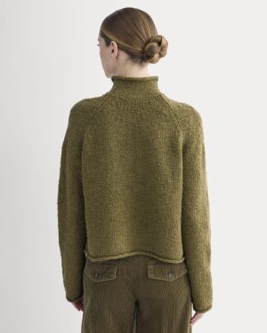 This sweater is a nod to the ’90s with updates for today’s wardrobe. Raglan sleeves meet a turtleneck collar with a rolled edge. made for peeking through your fave coat. Weighty wool blend with a textured slubby finish—it’s warmth you can feel.