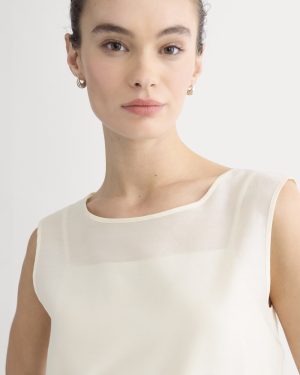 Sleeveless Top in Cotton-Silk Organza | Parchment