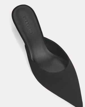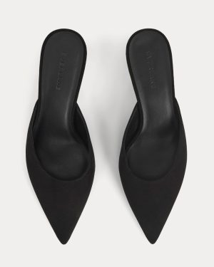 This easy mule features a pointed toe. slightly curved kitten heel. and 2 1/4in heel height. It works with anything from denim to dressier outfits. We recommend those with a fuller foot go up a half size for the comfiest fit.