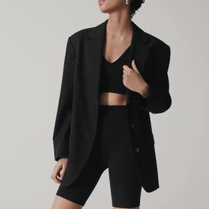 The ’80s Blazer is true to tailoring traditions. featuring a classic notch collar. exaggerated shoulders. and a relaxed silhouette with three front pockets—sewn shut to keep the silhouette streamlined. and one interior pocket to keep your most important essentials close at hand. The best part? It looks just as good thrown over a bralette and leggings as it does over denim or smart pants.