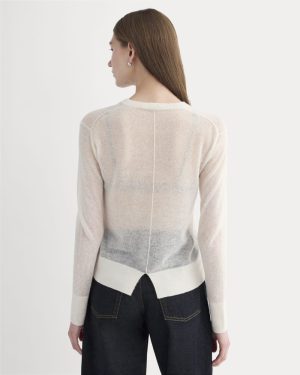 This long-sleeve. crewneck top has dropped shoulders. a relaxed fit. and hits at the low hip. Made with a semi-sheer ultra airy Alpaca and extra-fine merino wool blend yarn. it’s perfect for layering over a bralette or cami for dressier occasions or a tee with denim for downtime.