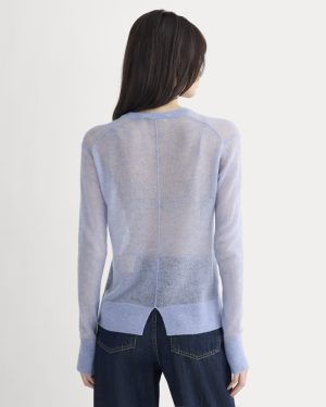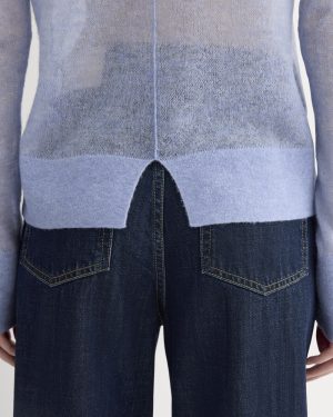 This long-sleeve. crewneck top has dropped shoulders. a relaxed fit. and hits at the low hip. Made with a semi-sheer ultra airy Alpaca and extra-fine merino wool blend yarn. it’s perfect for layering over a bralette or cami for dressier occasions or a tee with denim for downtime.
