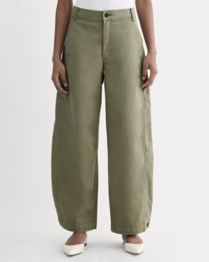 This full-length. high-rise chino features snaps at the leg opening to create a balloon silhouette. Made with breathable. certified organic cotton to keep you cool and fresh. with a little stretch for comfort. Play with proportions by pairing with a crop top or fitted tank. or go baggy with an oversized shirt. Did You Know? This garment is made from certified organic cotton. Organic cotton uses crop rotation. cover crops. and organic fertilizers instead of toxic chemical fertilizers or pesticides—which means cleaner water. lower water usage. lower pesticide use. healthier soil. and a safer working environment for cotton farmers. compared to conventional cotton.