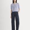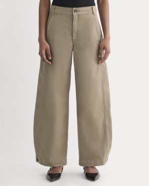 This full-length. high-rise chino features snaps at the leg opening to create a balloon silhouette. Made with breathable. certified organic cotton to keep you cool and fresh. with a little stretch for comfort. Play with proportions by pairing with a crop top or fitted tank. or go baggy with an oversized shirt. Did You Know? This garment is made from certified organic cotton. Organic cotton uses crop rotation. cover crops. and organic fertilizers instead of toxic chemical fertilizers or pesticides—which means cleaner water. lower water usage. lower pesticide use. healthier soil. and a safer working environment for cotton farmers. compared to conventional cotton.