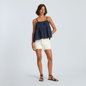The Billow Cami features a square neckline and double spaghetti straps. subtly accenting the shoulders. Made of 100% cotton. its light. billowy silhouette makes it a cool and elevated option all summer long. Effortlessly versatile. style it with shorts or high-waist pants and play with proportions.