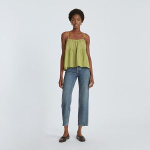 The Billow Cami features a square neckline and double spaghetti straps. subtly accenting the shoulders. Made of 100% cotton. its light. billowy silhouette makes it a cool and elevated option all summer long. Effortlessly versatile. style it with shorts or high-waist pants and play with proportions.