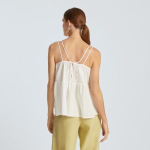 The Billow Cami features a square neckline and double spaghetti straps. subtly accenting the shoulders. Made of 100% cotton. its light. billowy silhouette makes it a cool and elevated option all summer long. Effortlessly versatile. style it with shorts or high-waist pants and play with proportions.