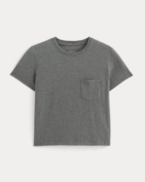The Box-Cut Tee in Essential Cotton | Heathered Charcoal | Pocket