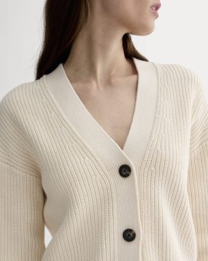 Your sweater wardrobe’s new MVP. the Boxy Cardigan in Everyday Cotton is your perfect down-for-anything layering piece. Made with chunky. ribbed organic cotton. it features a V-neckline and dropped. fall-back shoulders. It has a relaxed fit. so if you’re between sizes or are looking for a slimmer fit. try sizing down. Easy to throw on with any outfit.