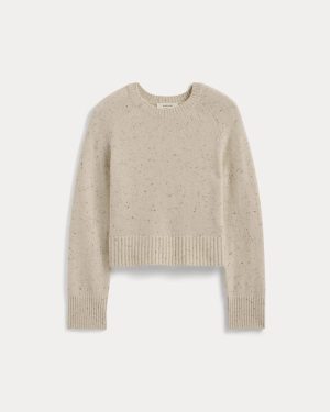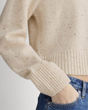 This piece features a classic boxy fit—cropped with ribbed detailing—now in a premium updated blend of GRS-certified recycled cashmere and GCS-certified responsible cashmere. so you can wear this timeless staple on repeat for years and years.