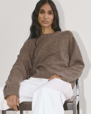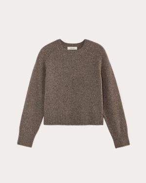The Boxy Crew in Cashmere | Taupe Brown Donegal
