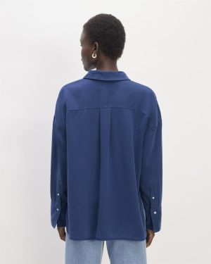 Our best-selling Boxy Oxford now in a buttery soft. 100% TENCEL™ Lyocell fabric. With a classic point collar. dropped shoulders. a clean button front. oversized patch pockets. and a relaxed boxy shape. Polish it up with trousers and heels. or dress it down with jeans and sneakers for a casual-yet-put-together look. Known for its lightness and versatility. TENCEL™ Lyocell is a man-made cellulosic fiber extracted from PEFC and FSC-certified responsible wood sources. It offers the same exceptional softness as conventional cotton while using less energy and water in the production process.