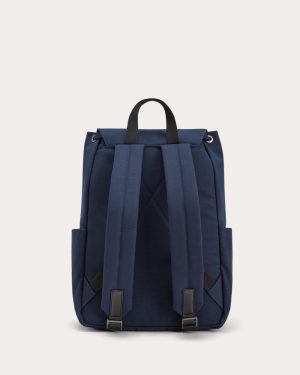Get organized and look good doing it. Spacious enough to stash all your essentials. easy to pack (and find everything). this backpack is ready for any travel situation you throw at it. Its front snap closure has a drawstring for extra security. and it features a front zippered compartment. and exterior metal zipper pocket for even more storage. It also has adjustable straps. a top handle. and side water bottle pockets. Made with recycled canvas. featuring leather trim details that give it a heritage vibe.