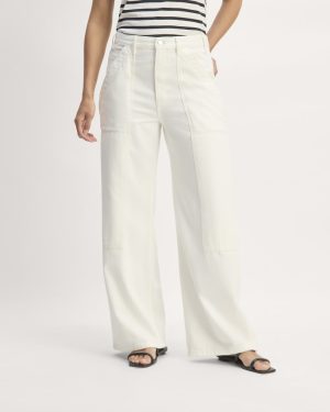 In a relaxed. baggy fit—that’s extra baggy at the leg. it features utilitarian stitching and front panels. with slanted pockets. patch back pockets. and a zipper fly. Designed to be worn oversized. if you’re looking for a slightly less baggy fit. try sizing down. It’s made with a blend of organic cotton and our softest. lightest. non-stretch Refibra blend denim*.
