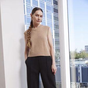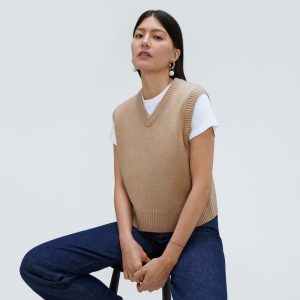 This season’s most popular layer. The Cashmere Vest features a classic ribbed V-neck and ribbed sleeves for a vintage-inspired look. With a slightly shrunken fit. it can be styled alone or worn over shirts and tees on cooler days. Soft. Luxurious. Warm. All the beauty of cashmere—with over 90% less raw material carbon emissions.