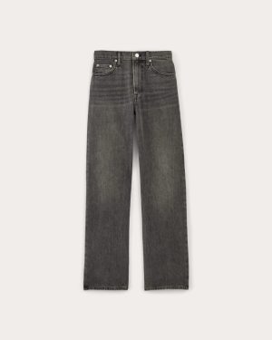 This piece features a high rise. low-stretch. relaxed fit with a zip fly. and relaxed. full length straight leg.
