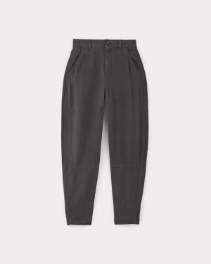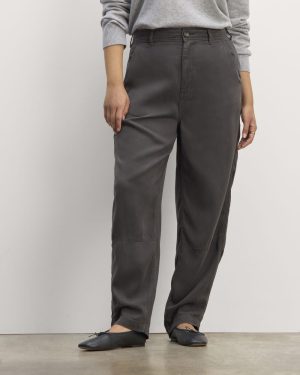 Our Chino in Buttersoft is a high-waisted pant crafted in a buttery soft. 100% TENCEL™ Lyocell fabric. It features a cool curved leg (similar to the Utility Barrel Pant) and asymmetrical back pockets: one with a button-back flap pocket and one with a slip pocket. These pants are slouchy. so if you want a slimmer fit. try sizing down.