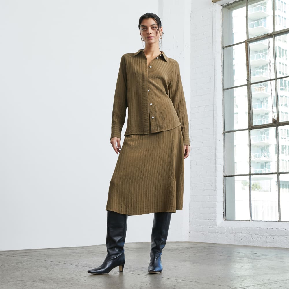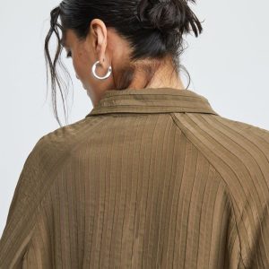 The City Stripe Shirt will be your new go-to style. Featuring raglan cuffed sleeves and a button-front. Wear it alone for a relaxed. yet put together look or throw a blazer or bomber on for added warmth. This fabric has a heavier weight and is great for transitioning seasons.The viscose in this garment comes from an FSC-certified supplier who has been audited and assessed as being at low risk. or has taken substantive action to eliminate known risk of sourcing rayon and viscose from ancient and endangered forests by CanopyStyle. Made from post-consumer plastic bottles that are collected. washed. chopped. melted. and then made into polyester yarn. REPREVE® recycled polyester boasts less energy and water usage as well as reduced greenhouse gas emissions. when compared to virgin polyester and other conventional recycled plastic sources. The REPREVE® registration platform provides full supply chain visibility from source to product—ensuring the exact bottle count per product and source location of those bottles. To date. REPREVE® has saved over 30 billion plastic bottles from landfill.