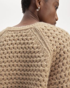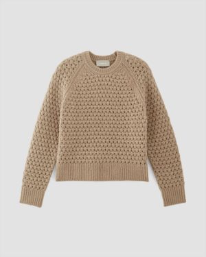 Featuring a new honeycomb texture stitch in our lightweight. ultra-cozy and chunky yarn. the Cloud Oversized Textured Crew has a relaxed fit with raglan arms. Pair it with our signature high-waist denim or over the Satin Square-Neck Slip Dress.
