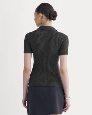 This slim-fit top features a collar. chest patch pockets. and a placket—all made with our heavyweight premium jersey fabric to contrast with the rib-knit texture of the body. Style it with wide-leg trousers and a low heel. or balance the slim fit with a voluminous skirt.