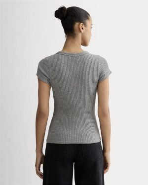 This piece features a slim fit. short sleeves. and chunky crew neckline in a blend of organic cotton and LENZING™ ECOVERO™ with a slubby. textured rib.