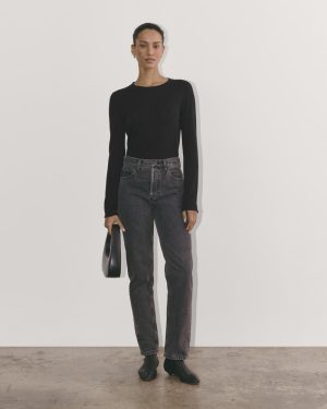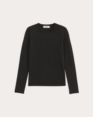 A slim fit. rib trim crew neck. it features a rolled edge on the sleeves and neck. Made with a lightweight. soft organic cotton and certified recycled cashmere blend. it’s designed for year-round wear. Style it with jeans. pants. under a cardie. or blazer. it’s that easy.