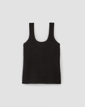This piece features a slim fit. open eyelet stitching. and scoop neckline at front and back.