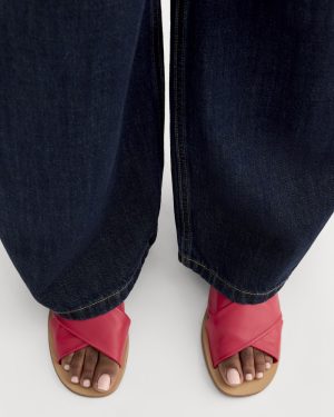 Made of buttery soft leather. the Day Crossover Sandal features a tapered square toe. a flexible footbed that gives with every step. and a few updates from the last rendition—like a slightly raised sole and a wider. better fit throughout. Plus. the criss-cross straps are folded over for added comfort and less chafing—talk about a win-win.