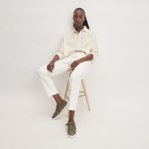 The Day Sneaker features a slightly tapered toe. a classic lace-up design. a versatile low-ankle height. and a contrast rubber outsole for durability in new colors. Easy to dress up with our Everlane Editions collections or dress down with our signature Way-High® denim. This shoe showcases a rubber outsole made of a natural and recycled rubber blend that’s 94.2% free of virgin plastic. and 100% recycled polyester laces and linings. This leather is sourced from a Leather Working Group Gold-certified tannery. The Leather Working Group (LWG) Audit Standards provide transparency and accountability within the leather supply chain—covering energy and water usage. safe chemical practices. worker health and safety. and wastewater management.