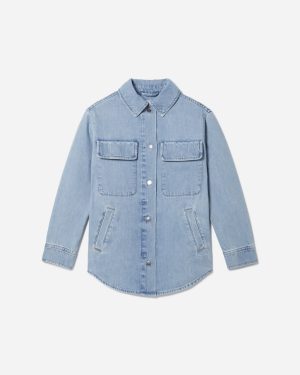 Made of breathable cotton. the Denim Shirt Jacket features a relaxed point collar. a classic button front. two oversized patch pockets. two side pockets. a rounded hem. and a boxy. oversized cut. The best part? It looks good over just about anything.