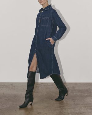 Get your yeehaw on in this Western-inspired shirtdress with a classic point collar. two patch pockets and button-front design. For an elevated Western look. saddle up this silhouette with our Banana Boot.