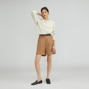 We took your favorite The Draper Pleated Pant in Buttersmooth and cropped it into The Draper Short in Buttersmooth. Same highest-rise silhouette. handy side pockets. and that distinctive front pleat. now in cool city shorts. Made with TENCEL™ Lyocell and cotton blend. these shorts will keep you cool and composed all season long.
