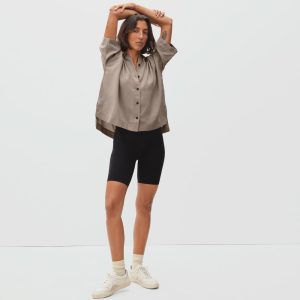 The Drapey Square Shirt features a classic point collar. dropped shoulders. a clean button front. a high-low hemline. and a relaxed. boxy shape. Plus. it’s made of smooth. drapey tencel. which means it’ll look polished even if you (literally) throw it on.