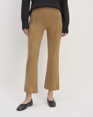 Made of our ultra comfortable. double-knit fabric with the perfect amount of stretch. these pants are fitted through the waist. hip and thigh with a cropped. kick flare leg. It features a hidden side zip. a clean waistband with interior elastic and pintuck detailing at the center front of the pant leg.
