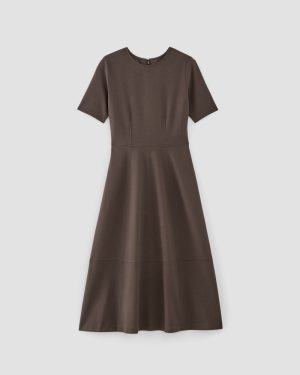 The answer to your dress dreams. meet the Dream Short-Sleeve Dress. Fitted in the bodice. it features a midi-length full skirt with seaming details. slim-fit sleeves that hit just above the elbow. and a center-back zipper. It’s made with our soft. double-knit Dream fabric. for that fits-like-a-dream effect. Easy to wear and simple to style. just add loafers for day. or heels or boots for evenings to give it an elevated edge. This dress is made with a blend of organic cotton and TENCEL™ Modal. a man-made cellulosic fiber extracted from FSC and PEFC-certified responsible wood sources. with a lower water and carbon footprint compared to conventional modal. Lenzing. the producer of TENCEL™ Modal. has achieved the highest rating from CanopyStyle for clean chemistry use and water recycling.