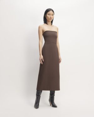 The Dream Strapless Dress is elegant and effortless to wear. In a maxi-length silhouette. it features a fitted bodice flowing into a skirt that’s fitted at the waist through to the hips. falling straight to create that timeless column shape. A back slit helps with movement. and silicone tape on the interior edge of the neckline ensures the dress stays in place. fastening with a back zipper. Made with our soft. double-knit Dream fabric. it’s the perfect balance of polished poise with wearable comfort. This dress is made with a blend of organic cotton and TENCEL™ Modal. a man-made cellulosic fiber extracted from FSC and PEFC-certified responsible wood sources. with a lower water and carbon footprint compared to conventional modal. Lenzing. the producer of TENCEL™ Modal. has achieved the highest rating from CanopyStyle for clean chemistry use and water recycling.