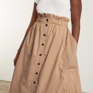 The Easy Button-Front Skirt | Burnt Orange Gingham