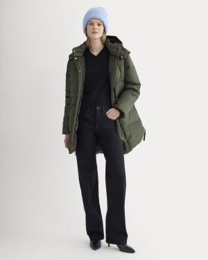 Nearly every element of the EverPuff™ Long—from the insulating fill to the lining and sleek outer shell—is made from certified recycled materials (excluding three small metal trims). reusing resources and reducing the impact of creating new ones. Its recycled shell is both water-repellent and water-resistant. so you stay dry while leaving a lighter footprint. It’s also bluesign® certified and PFAS-free. which guarantees safer performance chemistry for workers and consumers. along with reduced air and water emissions. Filled with 100% Re:Down®. it provides the same lofty warmth as virgin down while giving existing materials a second life and cutting environmental impact. With 700 fill power. it delivers serious warmth while staying light enough to pack and carry with ease. Thoughtful details—like a hidden zipper and covered placket. removable hood. front patch pockets. internal sleeve ribs. and an adjustable hem—make it easy to wear every day. Designed to last season after season with our repair warranty. resold for a second life through Re:Everlane. The cool girls know: super is superfluous. Better-for-you styles could never be that. Not ever.