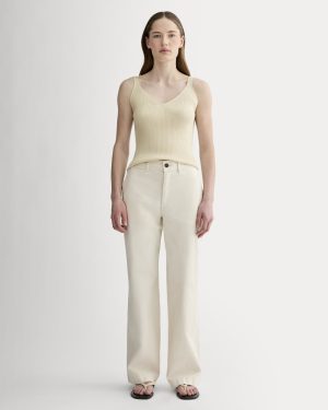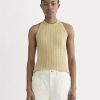 Featuring a front and back V-neck. it has-thin-bra-friendly straps for just the right amount of shoulder/collarbone reveal. Detailing at the waist gives it a fitted silhouette. perfect for topping your high or low-waisted pants and shorts. Made with a viscose and certified organic cotton blend. it’s soft. slinky. and ribbed. And if you love this style. it comes as a dress too for a midi-length take.