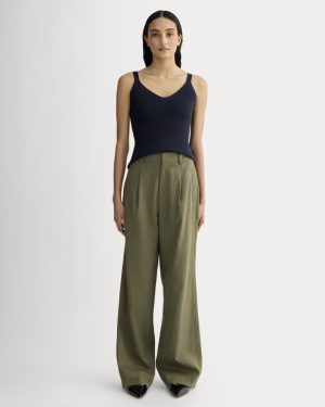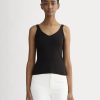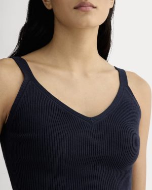 Featuring a front and back V-neck. it has-thin-bra-friendly straps for just the right amount of shoulder/collarbone reveal. Detailing at the waist gives it a fitted silhouette. perfect for topping your high or low-waisted pants and shorts. Made with a viscose and certified organic cotton blend. it’s soft. slinky. and ribbed. And if you love this style. it comes as a dress too for a midi-length take.