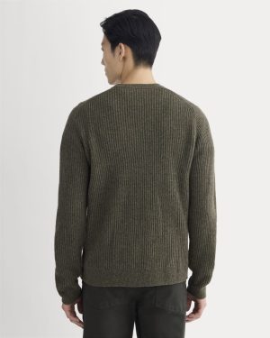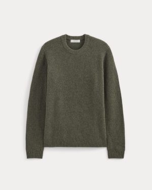 The Fisherman Crew in Wool Cashmere | Heathered Army Green