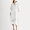 Featuring soft. fluttery sleeves and smocking through the bodice. this midi dress has two adjustable back ties to hold you in. Made with a cool lightweight stretch linen. it’s ready to go to brunch. the beach. and any other al fresco activities you’ve got planned.