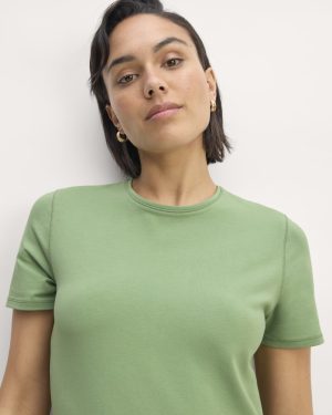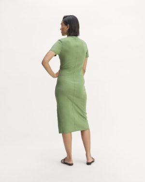 This piece features a crew neckline. slim fit. midi length. short sleeves. in Supima® Form fabric.